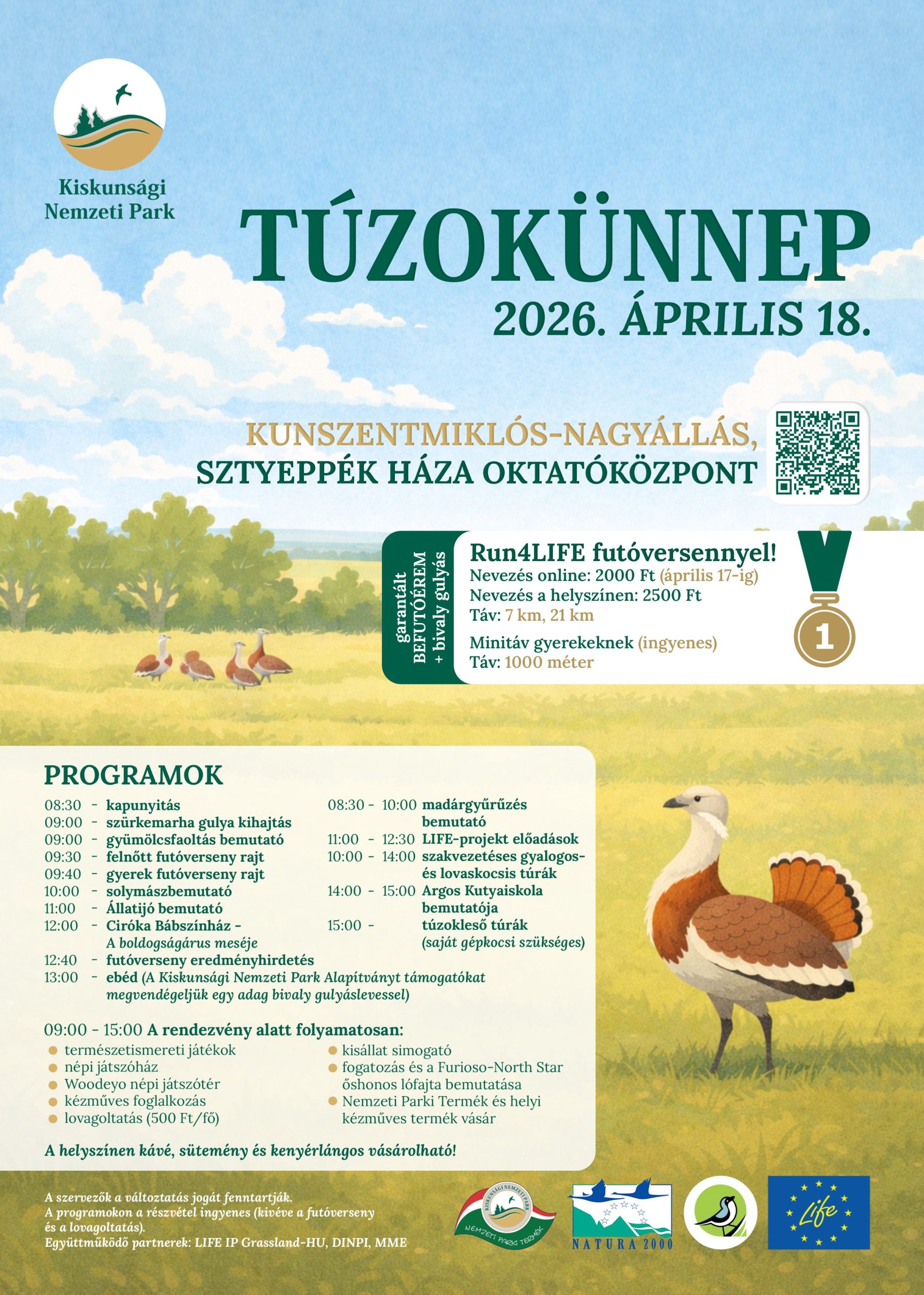 2026. április 18-án ismét megrendezzük a népszerű „Túzokünnep” programunkat Kunszentmiklós-Nagyálláson, a Sztyeppék Háza Oktatóközpont területén. A színes programokkal fűszerezett rendezvény ideje alatt meglessük a túzokdürgést is, amely ebben az időszakban a puszta kiemelt látványossága.